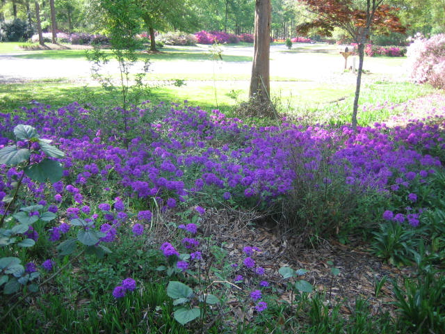 The next burst of color to catch our eyes is the beautiful magenta/purple of the small bulb plants under the crape myrtles. I am not sure that I even remember what they are, but I am thinking that someone told me (most likely Dr. Deeds the planter) they were a kind of gladiola.